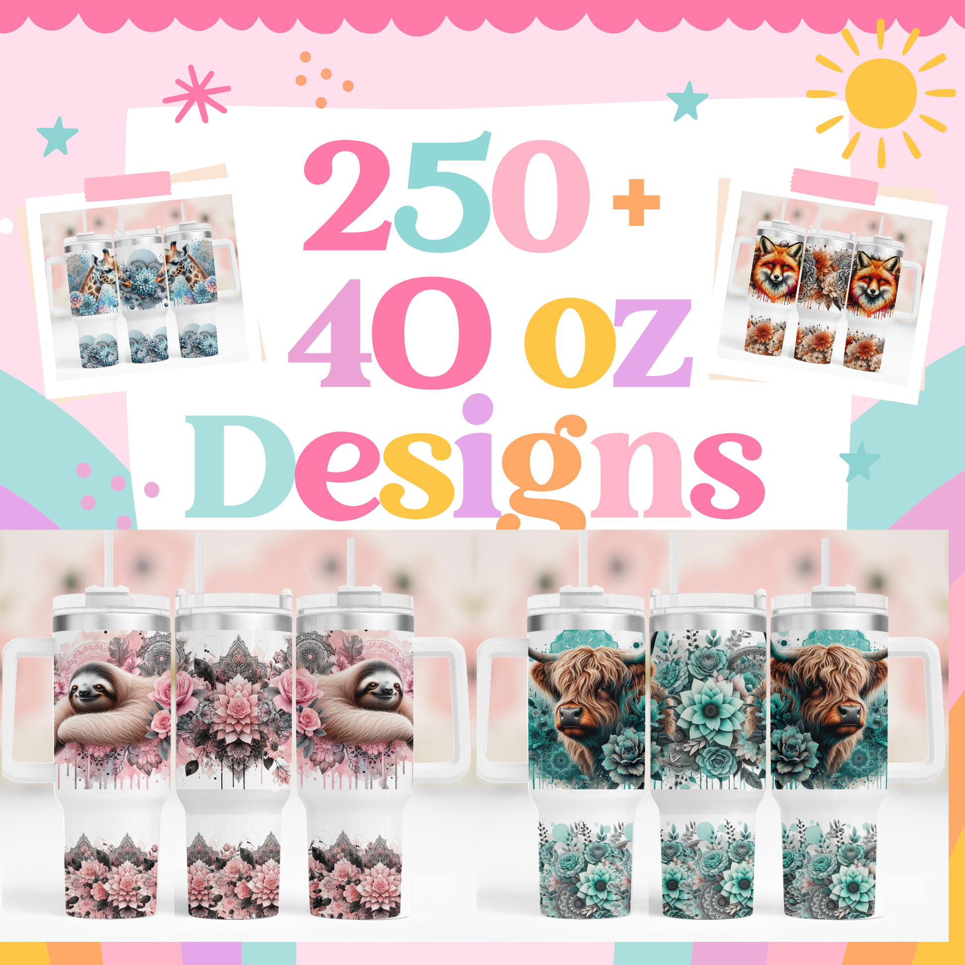 Build your print library with 250+ high-resolution sublimation PNGs designed for 40oz tumblers with handles. This bundle features a mix of animal-themed and mandala-themed designs—ready to print and perfect for makers, market stock, or custom orders.